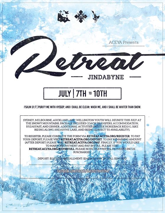 Sydney, Melbourne, Auckland, and Wellington youth will reunite this July at the Snowy Mountains. Buses will depart St Hurmizd’s Cathedral at 10am on Thursday (7/7/16), and will return on Sunday (10/7/16) at 9pm. Package includes coach transfers, accommodation, breakfast, and dinner. Additional activities include horseback riding, bike riding along Jindabyne Lake, and skiing (subject to availability).