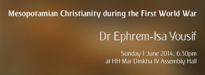It is our honour to receive Dr Ephrem-Isa Yousif, a renowned scholar in Syriac and Mesopotamian culture from France. Dr Yousif will present at HH Mar Dinkha IV Assembly Hall on Sunday 1 June 2014 at 6:30pm SHARP.